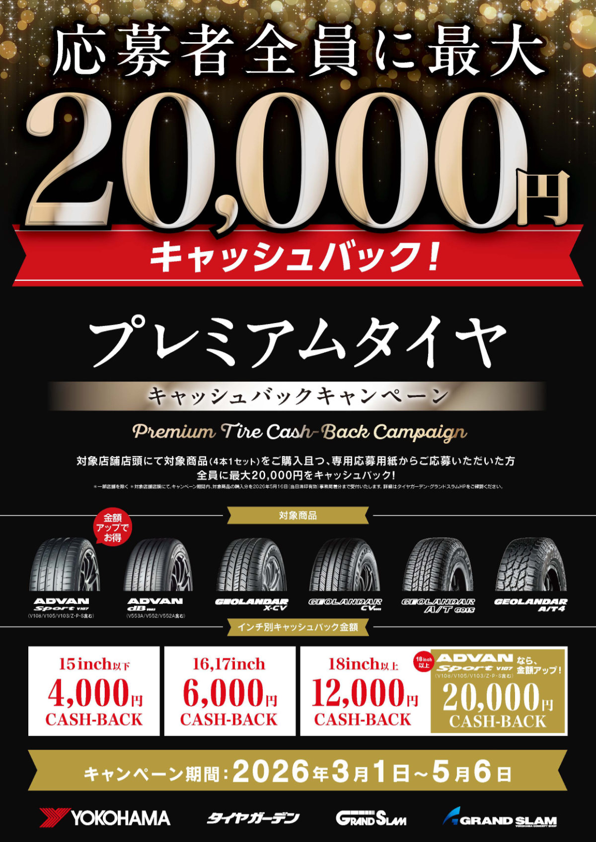 プレミアムタイヤキャッシュバックキャンペーン【応募者全員対象】